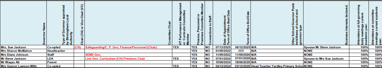 To enable the Governors to achieve these objectives, the Governing Body is made up of members from the school team including parents, staff, the Local Authority and the community. All Governors serve for a term of three years.